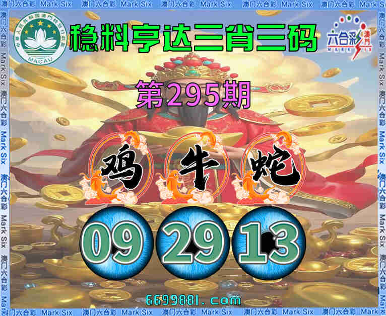 295期:【稳料亨达】 ☘️三肖三码☘️【鸡蛇】【09.29.13】开:牛05