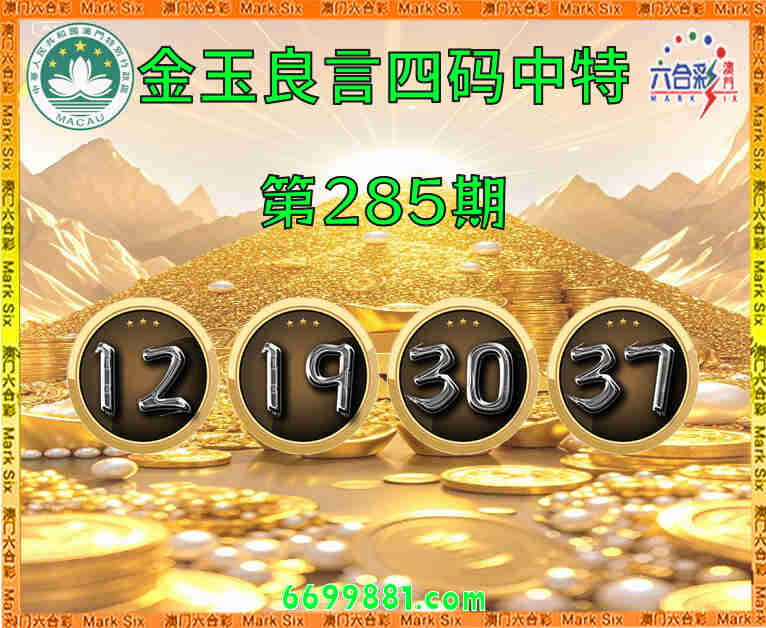 285期:  ♣️『金玉良言』  ♣️四码中特 ♣️【12.19.30.37】开:24