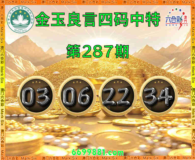287期:  ♣️『金玉良言』  ♣️四码中特 ♣️【03.06.22.34】开:34